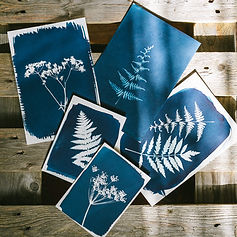 This workshop is designed to introduce you to the basic principles of cyanotype printing, to explore this simple, fun and effective printing method! Cyanotypes use light-sensitive iron salts to create distinctive blue toned images, a process made famous by Anna Atkins in 1843. The workshop will teach you how to mix, apply, and print your own cyanotypes, while exploring composition and technique. We aim for you to produce 5 A5/A6 cyanotype prints that you can frame, gift or keep, a perfect seasonal present for you or for someone special. If it's sunny we can use that to our advantage, but it's no problem if not as Hannah has multiple UV lightboxes to expose your pieces. All the materials are provided - just bring yourself and your enthusiasm. You may also be interested in the 'Cyanotype Wet Process' workshop on Sunday 19th July 10am As with all our workshops, you'll enjoy our homemade cakes and bottomless teas, coffees, or cold drinks - a glass of bubbly will be served towards the end of the session to complete your experience with us. 2026 Dates: Sunday 26th April 2pm Friday 3rd July 10am If the available dates don't suit, and have a group of 4 or more interested then please get in touch and we'll try to find you a date!