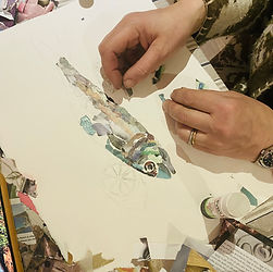 Taking paper collage to another level, this theraputic and creative workshop is hosted by the rather clever local artist Penny Lindner. Penny uses old magazines to create the most beautiful collaged pieces of art, starting with either a pear, a fish or a duck (that classic combination!) Penny has carefully chosen these subjects as ideal for this 3 hour workshop. Penny says, 'I made a conscious decision to reuse existing materials for my artwork in recent years. Colour magazines and newspaper provide the ideal medium to create collages that not only interpret my vision but also demonstrate I could achieve depth and texture with torn paper applied with a water-based glue.' Suitable for all ages (11 upwards) and abilities, this is a brilliant craft and easy to continue at home. Included in your workshop is everything you need to create your piece, plus a mount so you can simply add the frame to complement your interior once home. Finished size approx 28 x 21cm. As with all our workshops, you'll enjoy our homemade cakes and bottomless teas, coffees or cold drinks - a glass of bubbly towards the end of the session completes your experience with us. If the dates don't suit, and have a group of 4 or more interested then please get in touch and we'll try to find you a date!